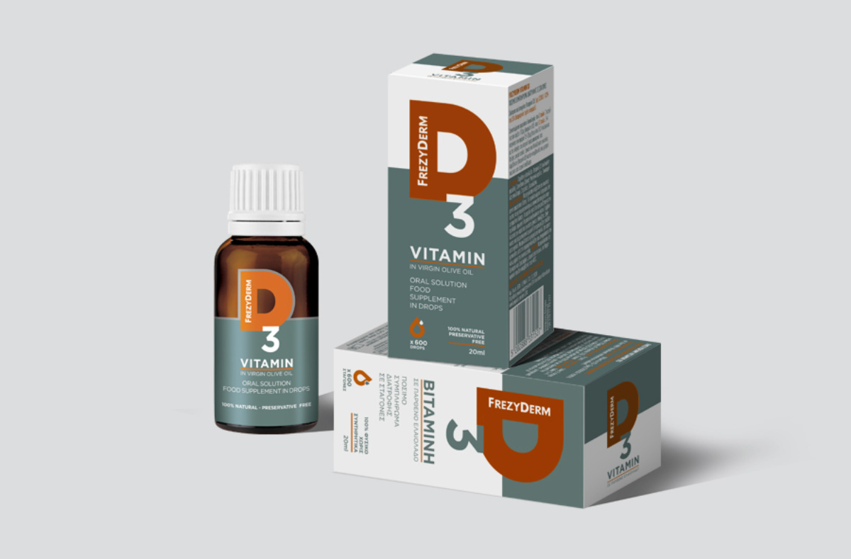 Όλη η ζωτική ενέργεια του ήλιου μεταφέρεται μέσα σε ένα μικρό φιαλίδιο, το Frezyderm Vitamin D3. Στην AbcDesign θέλαμε να αποδώσουμε σχεδιαστικά αυτή τη ζωτικότητα σε συνδυασμό με την επιστημονικότητα του προϊόντος.