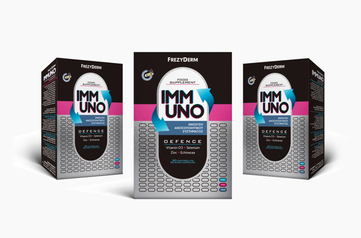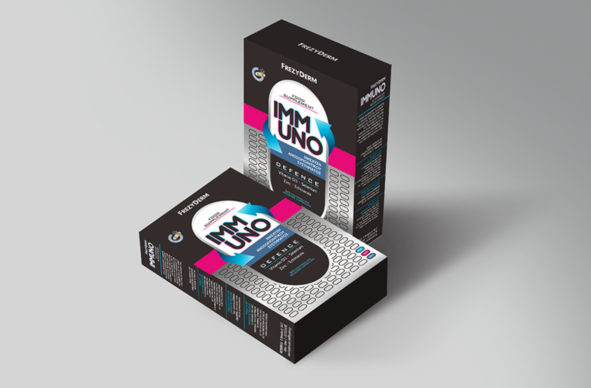 H πρώτη εντύπωση καθορίζει την επιτυχία ενός προϊόντος, γι’αυτό η συσκευασία του προϊόντος IMMUNO της Frezyderm αντικατοπτρίζει τη στοχευμένη εικαστική αποτύπωση ενός συμπληρώματος διατροφής, που θωρακίζει και δρα ολοκληρωμένα για την ενίσχυση του ανοσοποιητικού.