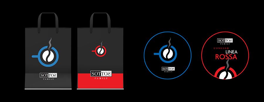 Branding and brand implementations for the espresso coffee packaging of Sottos Family.