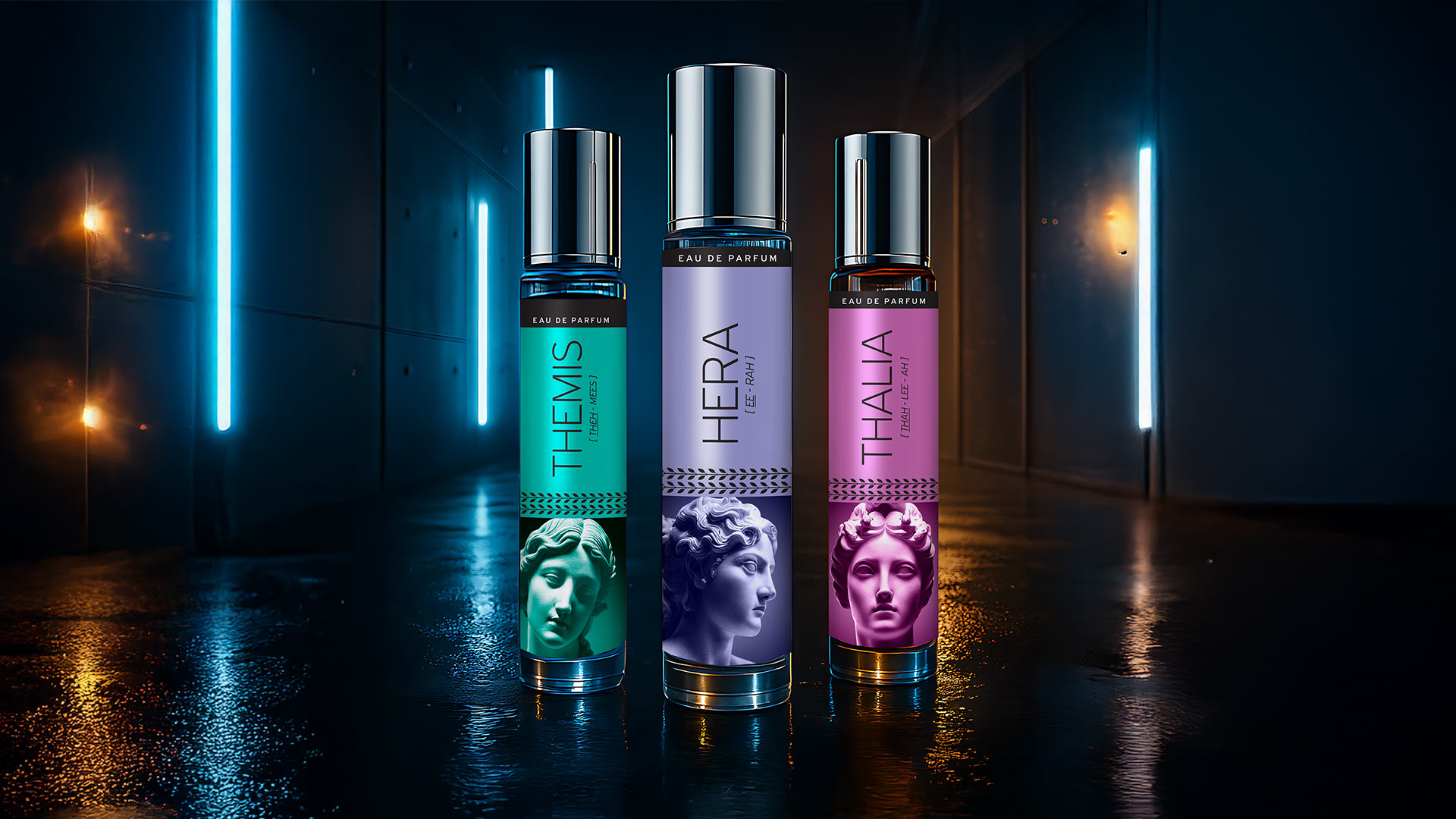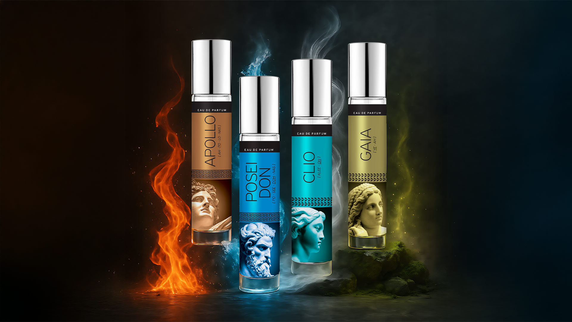 Through this concept, ABC Design Communication connects Greek cultural heritage with contemporary branding, transforming fragrances into carriers of identity and aesthetic experience.