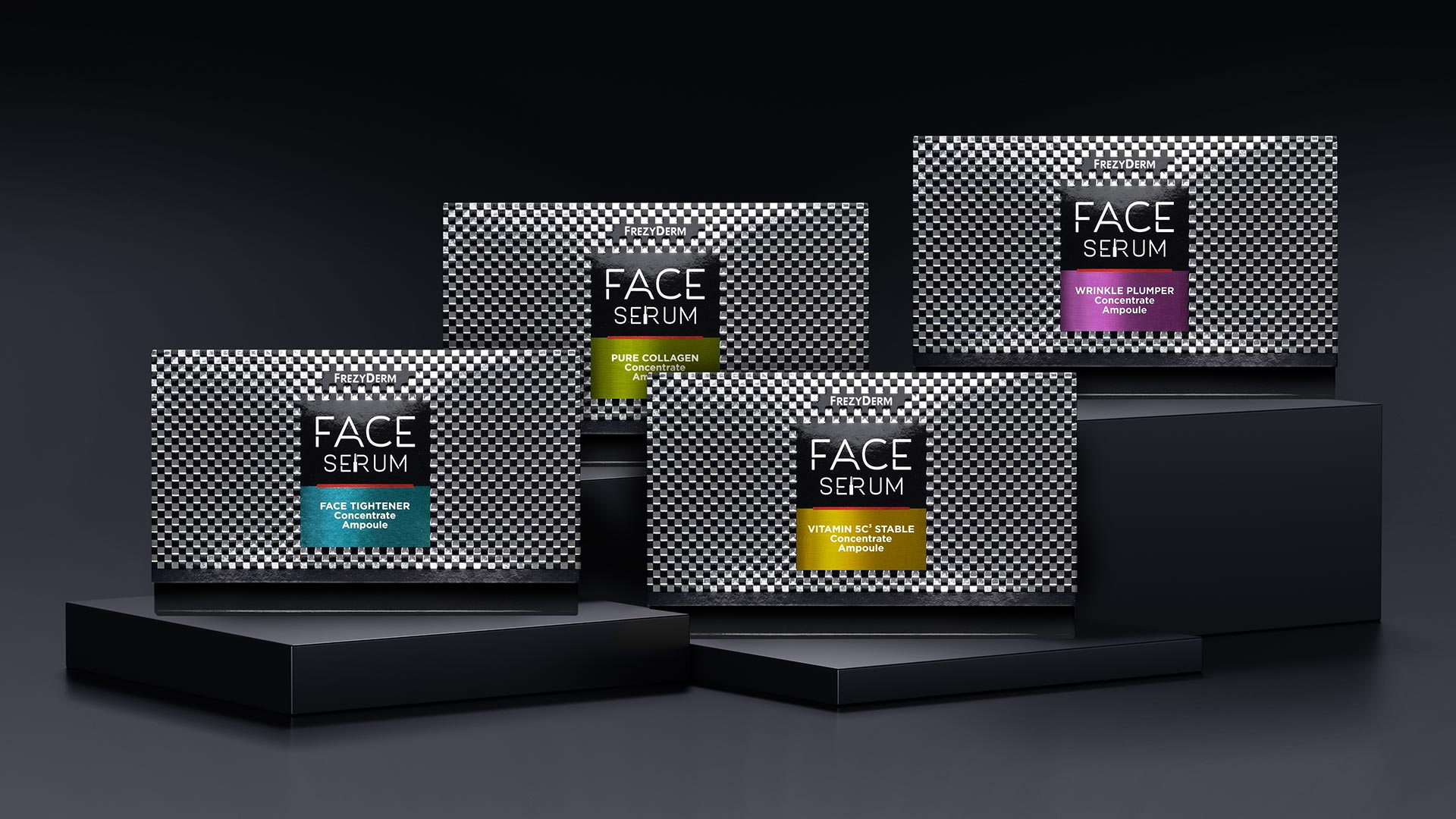 The revolutionary FACE SERUM Ampoules Set by Frezyderm deserved a premium case designed as a professional tool for dermatologists, not just a product, but a complete treatment proposal that communicates precision and trust.