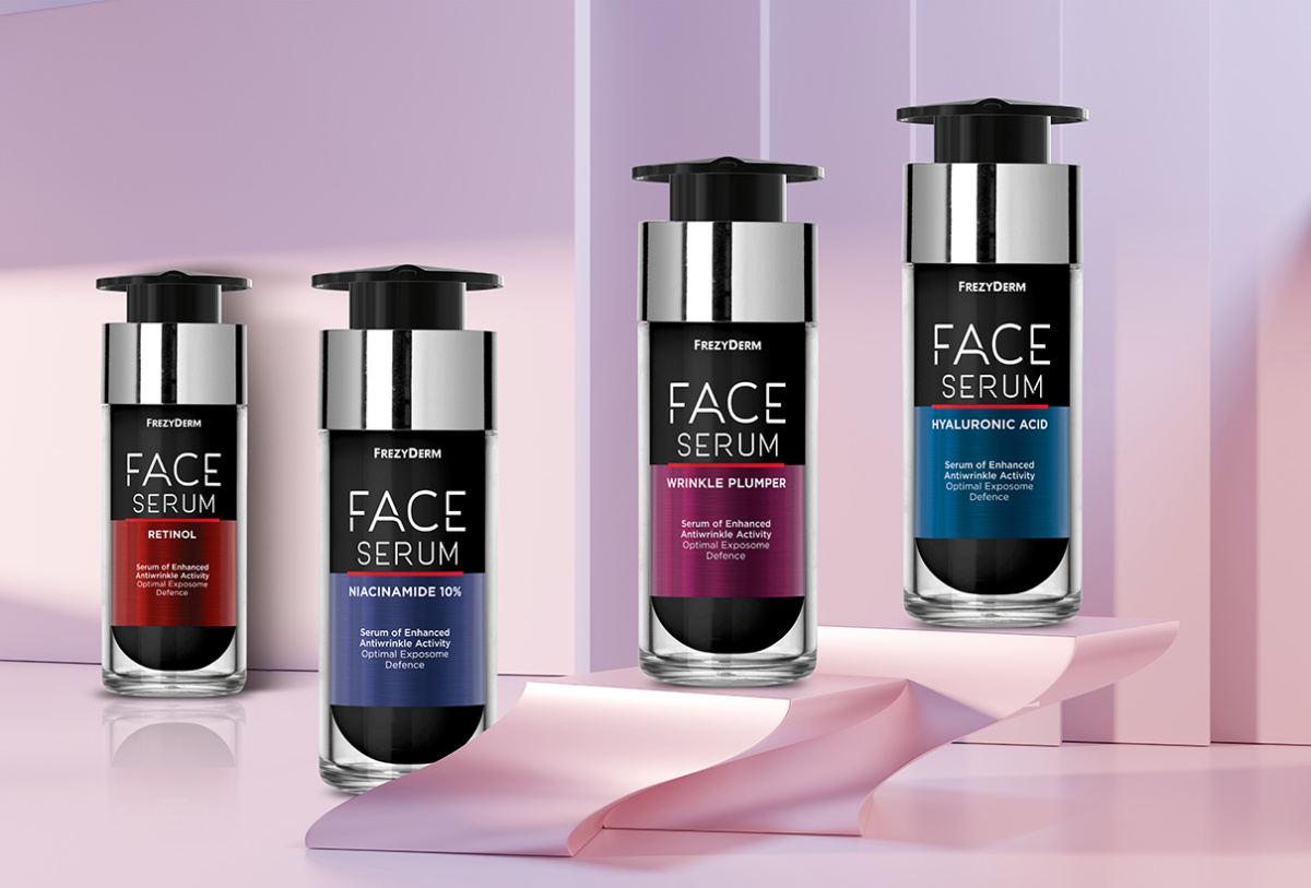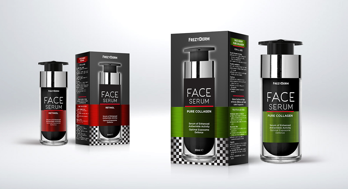Η ABC Design ανέλαβε τον σχεδιασμό της συσκευασίας για τη νέα σειρά Face Serum της Frezyderm, που περιλαμβάνει 8 εξειδικευμένους ορούς. Ο σχεδιασμός συνδυάζει την επιστημονική αξιοπιστία με την πολυτέλεια, δημιουργώντας μια minimal και δυναμική ταυτότητα. Το μαύρο φόντο και οι μεταλλικές λεπτομέρειες προσδίδουν premium χαρακτήρα, ενώ η χρωματική κωδικοποίηση διαφοροποιεί το κάθε serum, διευκολύνοντας την αναγνώριση. Ιδιαίτερο στοιχείο αποτελεί το καρό μοτίβο στη βάση της συσκευασίας, που θυμίζει σημαία γκραν πρι, συμβολίζοντας την ταχύτητα και την αποτελεσματικότητα των ορών στη φροντίδα της επιδερμίδας. Ο σχεδιασμός ισορροπεί ανάμεσα στην καινοτομία και την κομψότητα, αναδεικνύοντας τη δυναμική της σειράς Face Serum.