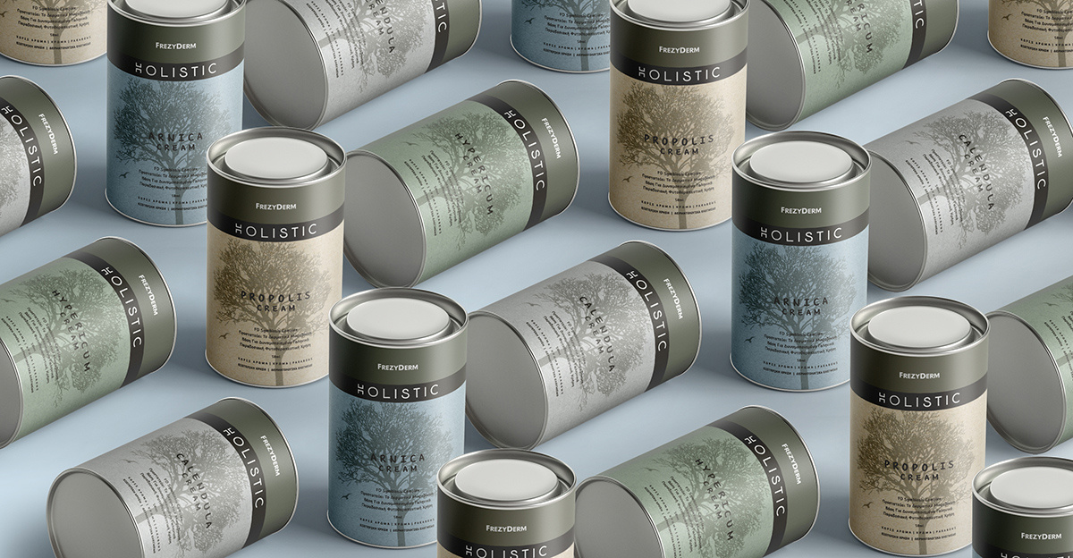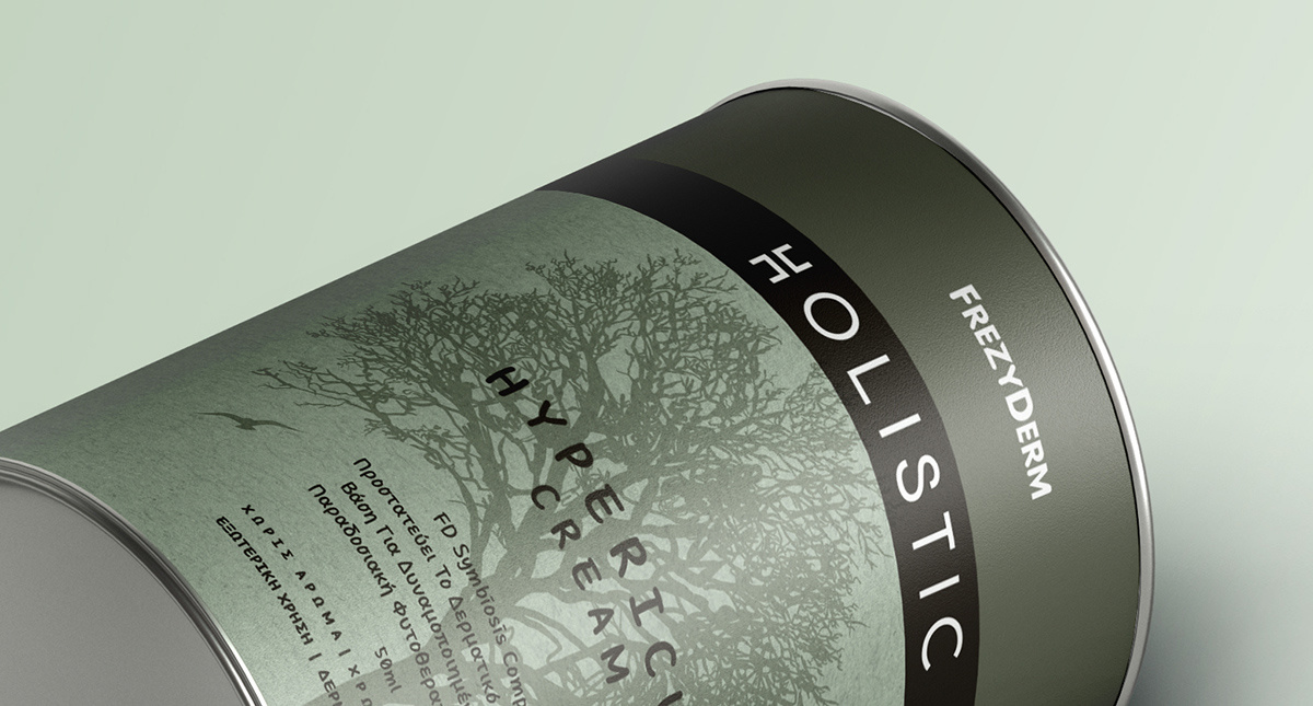 Η Frezyderm, πιστή στην φιλοσοφία της, παρουσιάζει τέσσερα προϊόντα ολιστικής θεραπείας για την επιδερμίδα, ενσαρκώνοντας την απόλυτη σύμπνοια με τη φύση. Επιδιώκοντας να αποτυπώσουμε εικαστικά τις ευεργετικές ιδιότητες των θεραπευτικών φυτών και βοτάνων, επιλέξαμε την πρόταση του χάρτινου κυλίνδρου. Στολισμένη με απαλά φυσικά χρώματα, η συσκευασία συνδέεται με την έννοια της φυτοθεραπείας και προσφέρει στο προϊόν αισθητικό προβάδισμα έναντι του ανταγωνισμού.