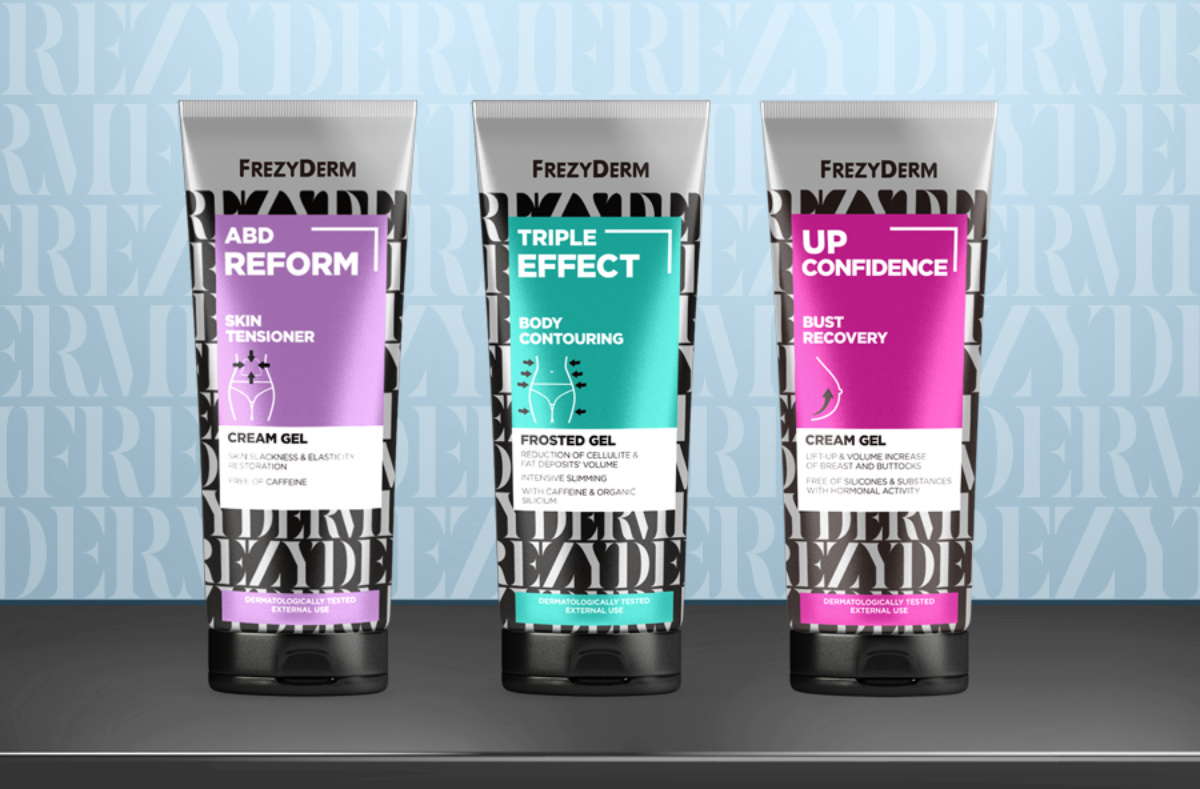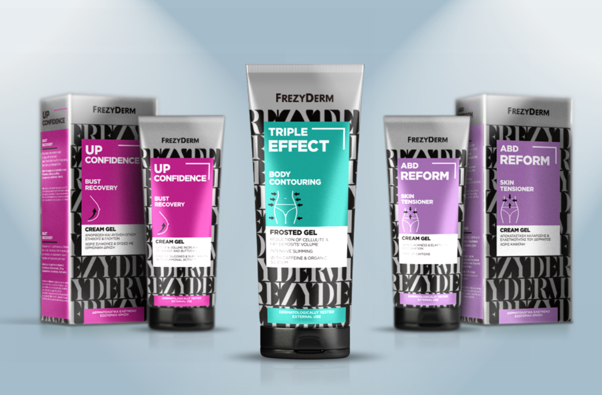 Κάθε συσκευασία διακρίνεται με ξεχωριστό χρωματικό κώδικα και διακριτικά γραφιστικά σύμβολα που αναδεικνύουν τη χρήση του προϊόντος. Το σχέδιο στις συσκευασίες ακολουθεί την ταυτότητα της Frezyderm ως brand, προσδίδοντας στη νέα σειρά έναν ιδιαίτερο χαρακτήρα που τη διαφοροποιεί από άλλες εταιρείες περιποίησης του σώματος, ενώ ταυτόχρονα ενισχύει τις πιθανότητες κατάκτησης σημαντικού μεριδίου στην αγορά.