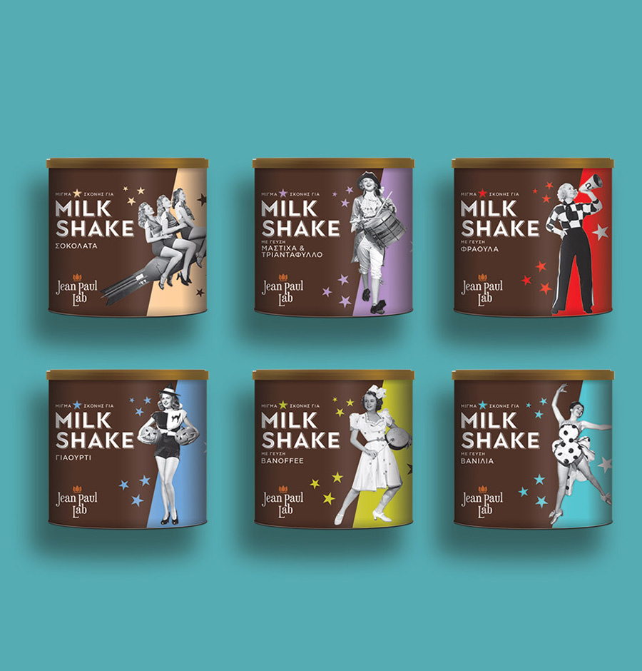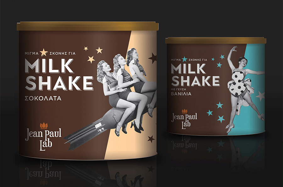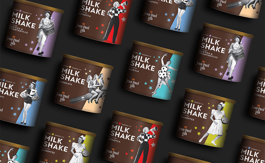 Η αποστολή μας να επαναφέρουμε στη ζωή τον παραδοσιακό χαρακτήρα των milkshakes για την Jean Paul Lab, μετατράπηκε σε ένα συναρπαστικό σχεδιαστικό ταξίδι στον χρόνο. Πήραμε έμπνευση από τη χρυσή εποχή των milkshakes στην Αμερική του ’30 και ’40. Αποδώσαμε εικαστικά το πνεύμα και την αισθητική αυτών των δεκαετιών μέσα από ασπρόμαυρες εικόνες γυναικών σε αντίστοιχο με την εποχή στυλ.