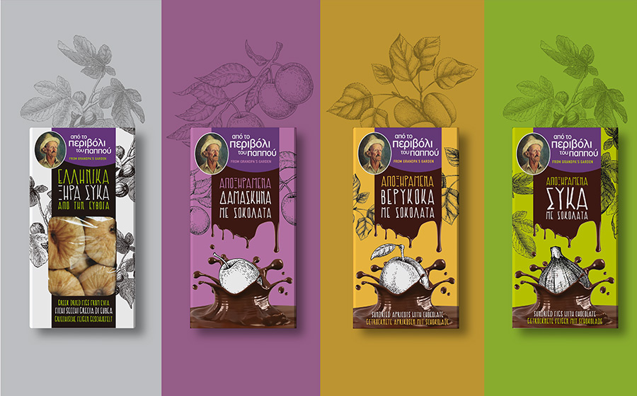 Η επιλογή μας να χρησιμοποιήσουμε την τεχνική της γκραβούρας προέκυψε μέσα από τη σκέψη να ενσωματώσουμε στοιχεία που αντανακλούν την πλούσια ιστορία και τις αξίες της οικογένειας Κόντος, αλλά και να δώσουμε μια «δια χειρός» εμφάνιση στο packaging. H εναρμονιση της χρωματικής παλέτας με το περιεχόμενο, έδωσε σε κάθε ετικέτα των προϊόντων «από το περιβόλι του παππού» το ύφος που πιστεύαμε ότι θα μπορούσε να τα αναδείξει στο ράφι.