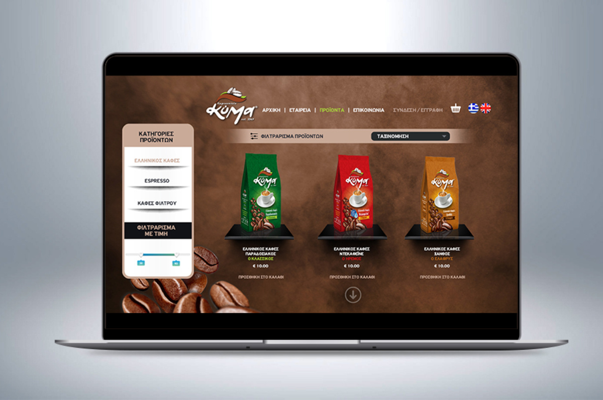 Στη δημιουργία του site της εταιρίας ΚΥΜΑ θέλαμε να αποδώσουμε την μαγεία του καφέ πλημμυρισμένη με άμεσες πληροφορίες γύρω από τα προϊόντα.