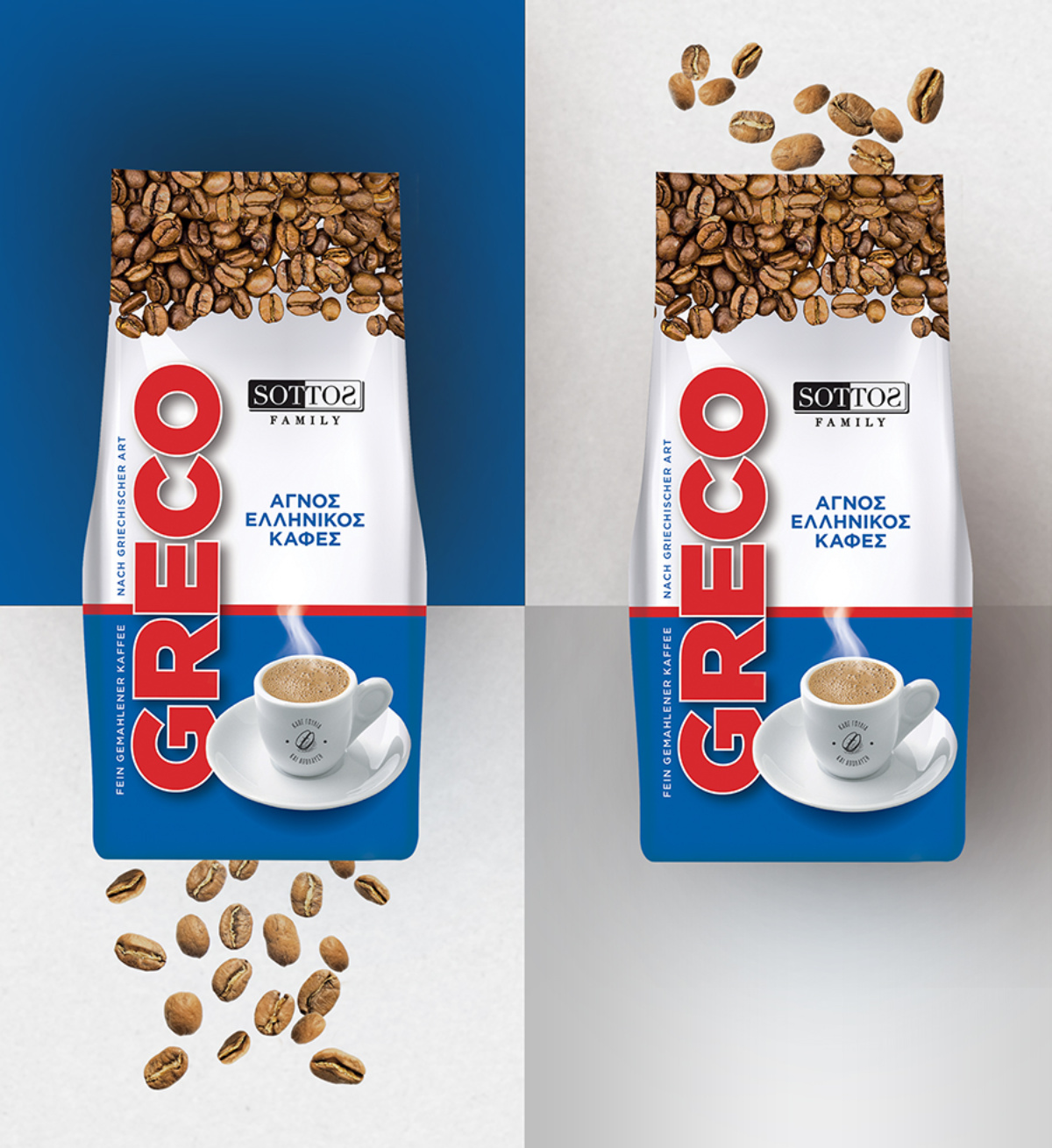 Η πλούσια, αυθεντική εμπειρία του ελληνικού καφέ GRECO είναι μια γεύση που φέρνει την Ελλάδα στο σπίτι του κάθε καταναλωτή. Βοηθήσαμε την οικογενειακή επιχείρηση Sottos Family με το rebranding της συσκευασίας ελληνικού καφέ GRECO, μια κίνηση όχι μόνο για την ενίσχυση των πωλήσεων αλλά και ως αφορμή για διείσδυση του brand στη γερμανική αγορά.