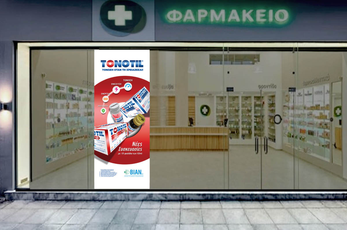 Στα πλαίσια συνεργασίας μας για τον σχεδιασμό του προϊόντος, σχεδιάσαμε συμπληρωματικά banners και αφίσες για το προϊόν TONOTIL, για να εκτυπωθούν και να τοποθετηθούν σε φαρμακεία και προωθητικά stands. Με έμφαση στην αποτελεσματικότητα και τα οφέλη του προϊόντος, δημιουργήσαμε υλικό με οπτικό ενδιαφέρον που απευθύνεται άμεσα στον καταναλωτή, προβάλλοντας την αξιοπιστία και την ποιότητα του TONOTIL.