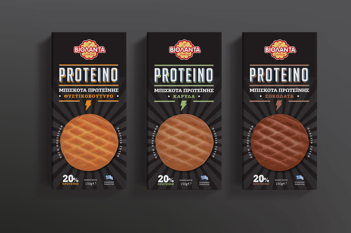 Η βιομηχανία μπισκότων Βιολάντα απάντησε στην ανάγκη των ανθρώπων που έχουν εντάξει στην καθημερινή τους διατροφή πρωτεϊνούχα προϊόντα, δημιουργώντας την Νέα σειρά μπισκότων «PROTEINO» σε τρεις διαφορετικές γεύσεις: Φυστικοβούτυρο, Καρύδα και Μαύρη Σοκολάτα,. Η νέα σειρά PROTEINO με την εμφάνισή της στην αγορά, στοχεύει να καλύψει την ανάγκη μιας μεγάλης μερίδας καταναλωτών σε πρωτεϊνικά προϊόντα.