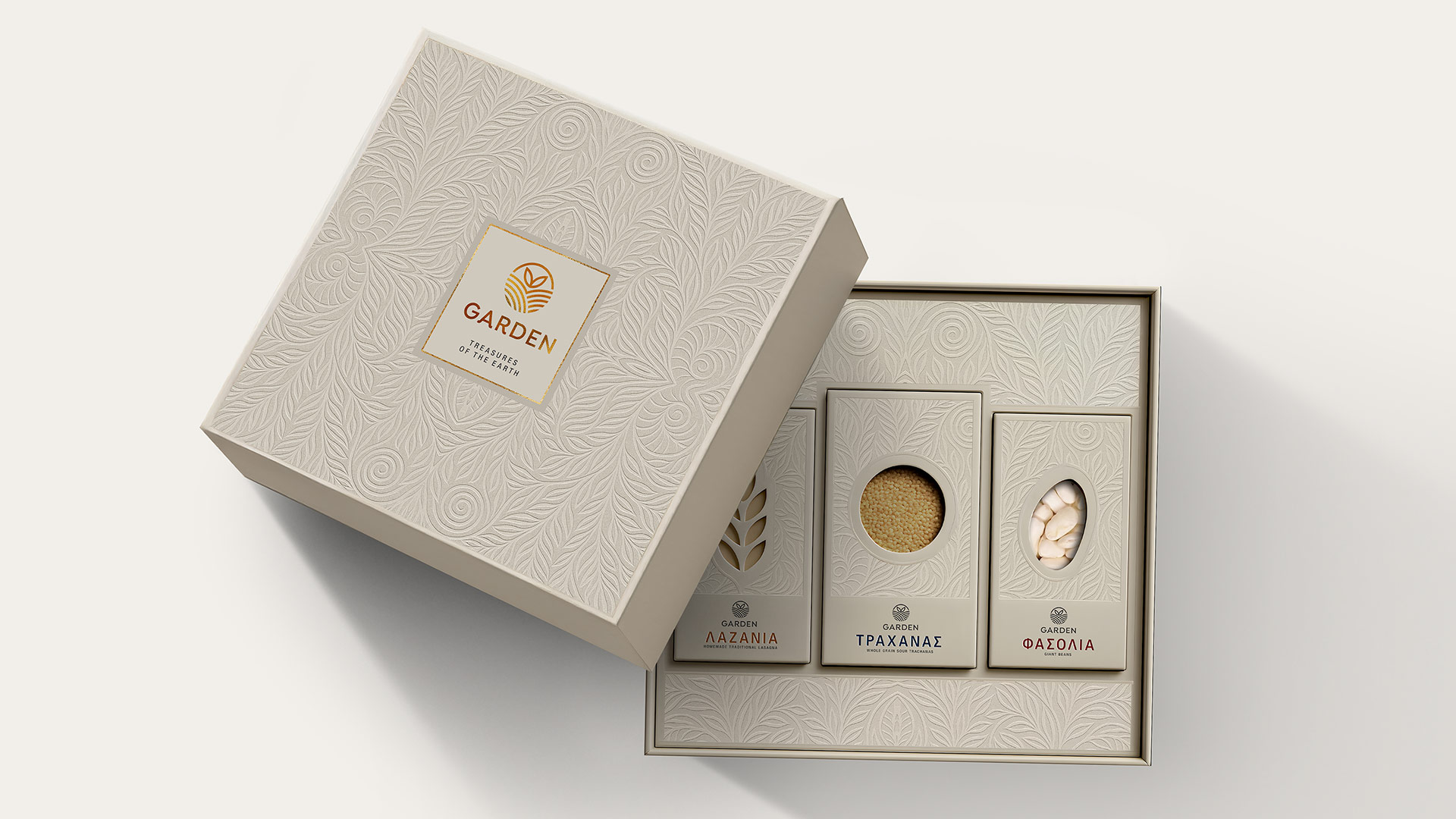 Το ζητούμενο του πελάτη ήταν η δημιουργία ενός premium κουτιού δώρου και συσκευασιών για όσπρια και ζυμαρικά.