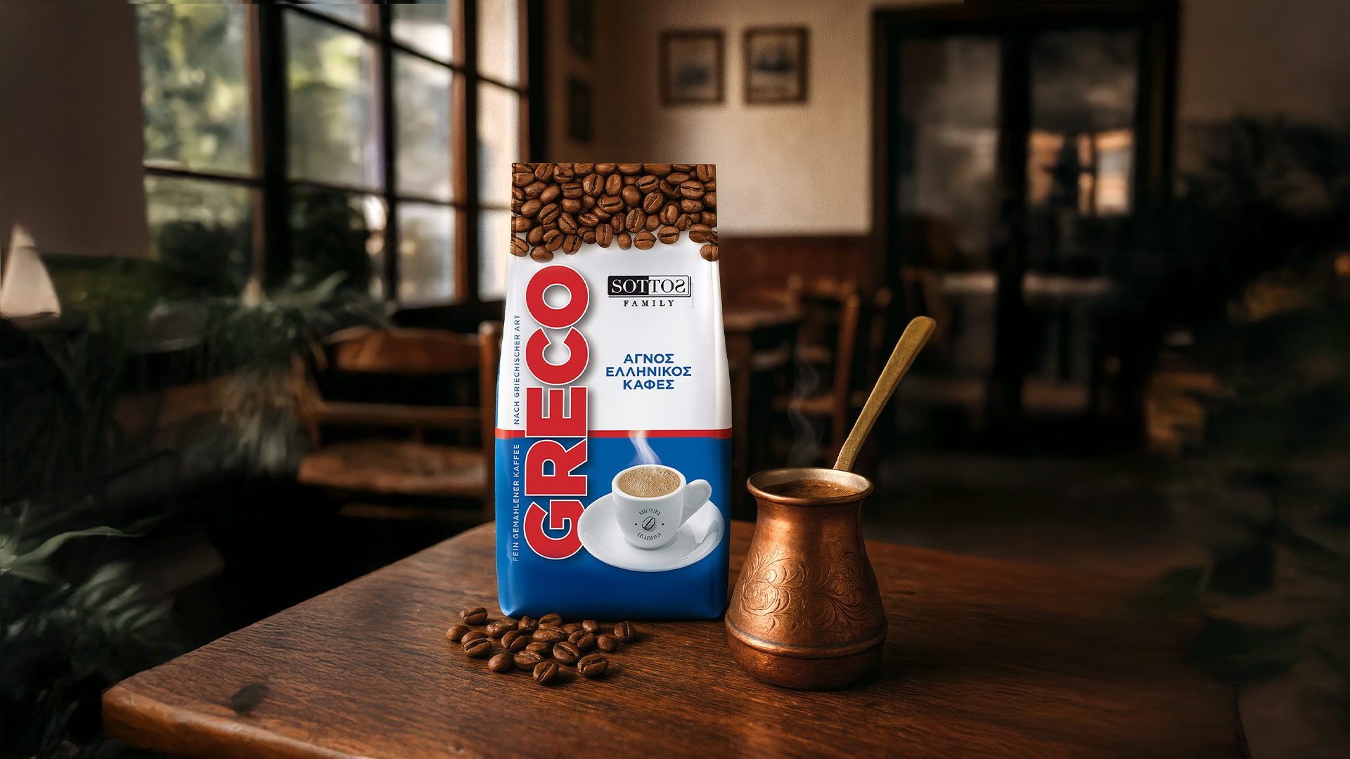 Η οικογενειακή επιχείρηση Sottos Family ήθελε να συστήσει την αυθεντική εμπειρία του ελληνικού καφέ GRECO στη γερμανική αγορά. Η πρόκληση δεν ήταν απλώς ένα rebranding για την ενίσχυση των πωλήσεων, αλλά μια στρατηγική κίνηση για τη διείσδυση του brand σε ένα νέο, απαιτητικό κοινό. Το design έπρεπε να επικοινωνήσει την πλούσια κουλτούρα του ελληνικού καφέ με έναν τρόπο οικείο, μοντέρνο και ακαταμάχητα ελκυστικό.